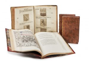 TITRE ARMORIEE ET DE 161 FIGURES HERALDIQUES GRAVEES SUR CUIVRE DANS LE TEXTE. L’ouvrage est une réponse critique à celui de Ménestrier, et sera à l’origine de la querelle entre les deux hommes. JOINTS - BRUCOURT. Essai sur l’éducation de la noblesse. Paris, Durand, Pissot fils, 1748. 2 vol. in-12 (16,4 x 9,5 cm), veau marbré, dos à nerfs orné de motifs dorés (reliure de l’époque). - CRAPELET. Cérémonies des gages de bataille. Paris, Crapelet, 1830. Gr. in-8 (27,5 x 16,5 cm), demi-chagrin rouge à coins, dos à nerfs orné de motifs dorés, tête dorée (Koehler). OUVRAGE ORNE DE 11 FIGURES HORS TEXTE LITHOGRAPHIEES, CERTAINES REHAUSSEES EN COULEURS A L’AQUARELLE. Provenance : 1. - Pierre Garanchon ( ? Ex-libris manuscrit). - Laugier (ex-libris). - Saint Marcel Eysseric (ex-libris). 3. Paul Adam-Even (ex-libris). Bibliographie : 1. Saffroy, I, 1954. 3. Vicaire, II, 467. Brunet, II, 407. 1. Bords des ff. effrangés, déchirure au f. de titre, partiellement déboîté, petite tache d’encre angulaire aux derniers ff., quelques rousseurs légères, petites galeries de vers marginales. Quelques figures tirées à l’envers. Sans le f. de table des familles citées, qui manque très souvent. 2. Reliures légèrement frottées, petite pièce de réparation à un plat. Quelques rousseurs. 3. Épidermures, mors et coiffes frottés. Des rousseurs. Quelques annotations au crayon.