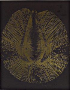 I. Corne de Rhinocéros (coupe) ; II. Brazilin (1) ; III. Poils étoilés de Pentzia ; IV. Corne de sabot de cheval ; V. Acide Citrique ; VI. Cartilages de baleine ; VII. Brazilin (2) ; VIII. Bourgeon de frêne (coupe) ; IX. Diatomée ; X. Graine ; XI. Bourdaine ; XII. Acide margarique ; XIII. Irional ; XIV. Saligenin ; XV. Gynérium Argenveum (graminée) ; XVI. Diatomée ; XVII. Lis ; XVIII. Diatomée ; XIX. Racine d’orge (coupe) ; XX. Acide urique du ruminant. Ouvrage relié en spirale comprenant 20 photogravures numérotées I à XX sous l’image, titre argenté frappé sur le premier plat, dans son coffret d’origine. Exemplaire n° 70 sur une édition de 305 dont 5 hors série, préface de M. Paul Léon. Achevé d’imprimer en avril 1931 sur les Presses de Draeger Frères. Ces images abstraites représentant des agrandissements de substances naturelles, “cristallographies”, sont souvent tirées sur des papiers métallisés de couleur. Image : 27,5 x 21,5 cm ; coffret : 44 x 40 cm Bibliographie Christian Bouqueret "Laure Albin-Guillot ou la volonté d’art", Marval collection, 1996, p.65-69. "Laure Albin Guillot, l’enjeu classique", Jeu de Paume, Ed. de la Martinière, Paris, 2013, p.114-123.