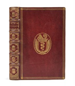 centre, dos à nerfs ornés de motifs dorés et chiffres dorés au centre des caissons, tranches dorées (reliure de l’époque). [7] ff., 450 p., [9] ff. Intéressante réunion par Étienne Baluze des dissertations de Pierre de Marca : « Dans la préface de 9 pages, Baluze rappelle que Pierre de Marca l’a chargé de publier ses œuvres inédites et de rééditer celles qui avaient déjà vu le jour ; il indique à quelle occasion ont été écrites, par le savant archevêque, les trois dissertations qui font l’objet du présent ouvrage » (Bulletin de la Société des lettres, sciences et arts de la Corrèze, 1881, p. 526). Baluze fut le secrétaire de Pierre de Marca puis le bibliothécaire de Jean-Baptiste Colbert. Bel exemplaire en maroquin aux armes de Jacques-Nicolas Colbert, second fils de Jean-Baptiste, abbé du Bec puis archevêque de Rouen. « Jacques-Nicolas Colbert avait hérité de la splendide collection de son père, mais il eut aussi sa bibliothèque propre à Rouen » (OHR). Provenance : - Jacques Nicolas Colbert (chiffres et armes). - Robert Samuel Turner (ex-libris). Bibliographie : Bulletin de la Société des lettres, sciences et arts de la Corrèze, 1881, p. 526. OHR, pl. 1298, fer ? Reliure légèrement usagée, quelques discrètes éraflures aux plats, mouillure au second plat, nerfs et coiffes frottés, les gardes de papier peignés sont absentes et ouverture réduite des plats, mouillures aux feuillets liminaires et petit manque au dernier feuillet de garde, décharge de l’ex-libris, petite tache au feuillet de titre, quelques rousseurs et plusieurs feuillets brunis, pâle mouillure affectant le haut des pages 81 à 96.