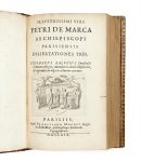 [MARCA].– BALUZE (Étienne) Illustrissimi viri Petri de Marca archiepiscopi parisiensis dissertationes tres. Paris, François Muguet, 1669. In-12 (17,6 x 11,2 cm), maroquin rouge, triple filet doré en encadrement des plats, armes dorées au...