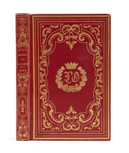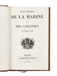 [MARINE] État général de la marine et des colonies. 18 janvier 1846. Paris, Imprimerie royale, 1846. Pet. In-8 (19,8 x 12,7 cm), maroquin à long grain écarlate, sur les plats encadrement de filets dorés multiples, décor de rinceaux dorés,...