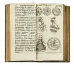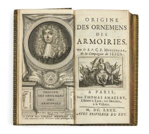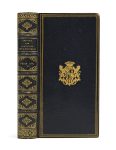 dorés, dentelle intérieure dorée, tranches dorées sur marbrure (Hardy-Mennil). Frontispice, [18] ff., 489 p., [13] ff. de table. ÉDITION ORNEE D’UN FRONTISPICE PAR OGIER, D’UNE VIGNETTE SUR LE TITRE DE 6 (sur 7) PLANCHES HORS-TEXTE GRAVEES SUR CUIVRE FIGURANT DES ARMOIRIES. Manque une planche de blason et la figure représentant le duc de Bourbon allant à un tournoi. Saffroy indique 7 planches de blason ; Brunet, 6. Tous deux mentionnent la figure représentant le duc de Bourbon allant à un tournoi, ici manquante. Exemplaire aux armes du comte Pierre de Mornay-Soult de Dalmatie. Provenance : - Comte Pierre de Mornay-Soult de Dalmatie (armes). - M. G., n° 138 (ex-libris). - Paul Adam-Even (ex-libris). Bibliographie : Brunet, III, 1626-1627. Saffroy, I, 2209. OHR, pl. 706. Reliure légèrement frottée, quelques éraflures avec très légers manques au dos, coins légèrement usés.