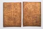 [PAPIER DOMINOTÉ] Ensemble de 12 feuilles de papier dominoté. Belle réunion de 12 fragments de papier doré gaufré, ayant servi de couvrure à des livres, la plupart doublé sur papier fort : - 2 fragments (26,5 x 20 cm) de papier doré gaufré...