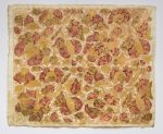 [PAPIER DOMINOTÉ] Ensemble de 6 feuilles de papier dominoté. Belle réunion de 5 feuilles entières et un fragment de papier dominoté doré : - 2 feuilles entières (37,5 x 43,5 cm) de papier doré gaufré à fond rose brossé, motif végétal....