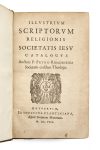 RIBADENEIRA (Pierre de) Illustrium scriptorum religionis societatis Jesu catalogus. Antverpiae, Ioannem Moretum, 1608. In-12 (17,3 x 10,5), veau blond, armes dorées au centre des plats, dos à nerfs ornés de filets dorés et chiffres dorés au...