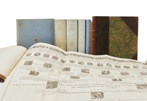 ciel. Exemplaire de travail, annoté par l’auteur, Gaston Saffroy. Bien complet du cinquième volume, Supplément, 1969-1983, établi par Geneviève Saffroy et portant un envoi autographe à sa mère. JOINTS - SAFFROY (Gaston). Bibliographie des almanachs et annuaires administratifs, ecclésiastiques… Paris, Librairie Gaston Saffroy, 1959. In-8 (25,3 x 16,5 cm) broché, en partie non coupé. - [ENCYCLOPÉDIE]. Encyclopédie méthodique. Histoire. Paris, Panckouke, Liège, Plomteux, 1784. 2 vol. in-4 (26,8 x 20,6 cm pour le texte et 30,5 x 22,8 cm pour les planches), demi-maroquin vert mousse à coins, dos à nerfs, têtes dorées (Thierry). Texte de l’Encyclopédie pour la partie Blason, avec les planches en volume séparé : 33 PLANCHES, DONT 28 A DOUBLE PAGE ET UNE REPLIEE, GRAVEES SUR CUIVRE. Provenance : Gaston Saffroy. 1. 2 vol. aux cartonnages très usagés, un troisième usagé. 2. Couverture légèrement brunie, plis au dos. 3. Dos passés. Mouillure au vol. de texte, renforts en fond de cahier à quelques ff., quelques rousseurs.