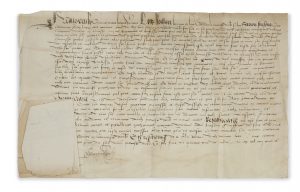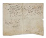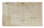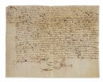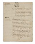 [BEAUHARNAIS] Ensemble de manuscrits. 3 mars 1424-15 juin 1635. 28 manuscrits (dimensions diverses), sur peau de vélin, parchemin et papier. Importante réunion de manuscrits dont la plupart concernent la famille Beauharnais. Parmi ce bel ensemble,...