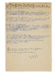 BRASSENS (Georges) Manuscrit autographe pour la chanson Jeanne. 1 p. et 3 lignes sur 1 f. de papier à petits carreaux. Manuscrit de recherche pour la chanson Jeanne, gravée sur l’album les Trompettes de la renommée sorti en 1962. La Jeanne de la...