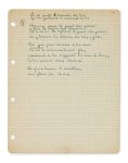 BRASSENS (Georges) Manuscrit autographe pour les Funérailles d’antan. 2 ½ p. sur 1 f. de papier à petits carreaux. Le recto du feuillet présente des recherches de vers pour une chanson qui ne semble pas avoir vu le jour : « Si ça peut...