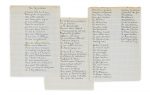 BRASSENS (Georges) Manuscrit autographe pour les Ricochets et Montélimar. 5 p. et demi sur 3 ff. de papier à petits carreaux. Manuscrit complet au propre pour la chanson les Ricochets, gravée sur l’album Trompe-la-mort, quatorzième et dernier...