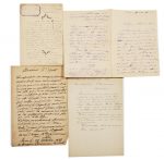 Justice. « Je ne sais plus quoi penser de votre extraordinaire insouciance. » Clemenceau tance Longuet, rédacteur de La Justice qu’il accuse de ne pas assez travaillé, de se reposer indûment sur ses collaborateurs, ce dont ceux-ci se sont amèrement plaints à Clémenceau. Clemenceau fait aussi référence à Édouard Pelletan dans la suite de sa lettre : « La femme de Daranne est très grièvement malade, Pelletan va dans sa circonscription, histoire de rendre compte de son mandat. » Charles Longuet était devenu le gendre de Karl Marx en épousant la fille de celui-ci, Jenny Marx. - 7 lettres et un télégramme adressés à Clemenceau, soit : ° 1 télégramme de Jules Claretie à Clemenceau, 30 septembre 1886. 1 p. sur 1 f. in-12 (13,2 x 11 cm). Il s’excuse pour un oubli qu’il va réparer et propose un dédommagement amical : « Je me permettrai de vous offrir des places sur mon ( ?) personnel. » ° 1 LAS d’Emmanuel Chauvière à Clemenceau, [Paris], 12 janvier 1885. 2 p. sur 1 bifeuillet in-8 (20,8 x 13, 3 cm). « Cependant ceux qui vous approchent et qui me connaissent peuvent vous certifier que j’ai été, quoique bien jeune alors, un ennemi acharné de l’empire ; que les premiers jours de la Commune m’ont vu prisonnier, et que je n’ai cessé de servir la République pour la République même. » Il souhaiterait se présenter aux prochaines élections municipales en remplacement de Me Maillard sur la sollicitation de proches. « Je suis un ennemi de l’opportunisme et du monarchisme ; je crois à la nécessité de continuer l’œuvre de la fin du XVIIIe siècle ; je le crois fermement : voilà la déclaration de mes convictions sous leur forme générale. » Emmanuel Chauvière (1850-1910), ancien Communard réfugié en Belgique, avait pu rentrer en France après 1880 grâce à la loi d’amnistie votée par le Parlement. ° 1 LAS d’Ernest Vaugham à Clemenceau, Paris, 18 février 1885. 1 p. sur 1 bifeuillet in-8 (19,7 x 12,7 cm), papier à en-tête de L’Intransigeant. Lettre de demande de recommandation pour son ami Monsieur Penon. ° 1 lettre du ministre de la guerre à Clemenceau, Paris, 5 ( ?) juin 1884. 1 p. sur 1 f. in-4 (24,8 x 19, 3 cm), papier à en-tête pré-rempli. Ce courrier au sujet d’une demande de congé à titre de soutien de famille pour Baptiste Faverot, soumise avec appui de Clémenceau indique que le dossier a été transmis au général commandant le premier corps d’armée. La lettre est de la main d’un secrétaire, avec signature autographe du sous-directeur, un colonel. ° 3 lettres de solliciteurs s’adressant à leur député ou le remerciant pour son appui, envoyées entre 1885 et 1888 par Auguste Maunat, Paul Demarchez et Antoine ( ?) Le Mée. Différents papiers. ° 1 LAS de Paule Mint ( ?). Oran, 9 mai 1885. 4 p. sur 1 bifeuillet in-8 (17,9 x 11,6 cm), La lettre porte sur les bruits de remise en liberté de Louise Michel à laquelle elle est liée. « Si ce bruit se confirme et que Louise soit véritablement rendue à la liberté je vous renouvelle, citoyen, la demande fraternelle que vous ai adressée au mois de janvier de nous envoyer Louise chez nous à Montpellier afin qu’elle retrouve dans la vie de famille et les bons soins, l’air de la campagne, les forces et la santé que deux ans de prison lui ont fait perdre. » Elle souhaite que sa chère Louise Michel puisse « se remettre en santé ». JOINTS 4 lettres et documents divers se rapportant à la presse et la vie politique des années 1880 : - 1 document signé d’Alphonse Humbert. 25 septembre, millésime illisible. 1 p. 1 f. in-12 (20 x 15,2 cm). Déclaration de socialisme de l’intéressé : « Sur l’interpellation du Citoyen Clémenceau je déclare que je suis sincèrement libéral et socialiste. » Alphonse Humbert (1844-1920), journaliste et homme politique, fut déporté en Nouvelle-Calédonie comme communard, gracié sur l’intervention de Clemenceau. Il deviendra député de la Seine en 1893, mais sous l’étiquette radical-socialiste. - 1 LAS de Désiré Bardet au secrétaire de la rédaction du journal La Justice. Sannois, 19 septembre 1885. 1 p. sur 1 bifeuillet in-8 (20,8 x 13,2 cm). Il exprime son net désaccord avec le programme présenté par la lettre du comité central. « Je repousse comme injurieuses vos propositions de tutelle et d’engagement. » - 1 manifeste signé de M. Emmerique, ancien juge de paix, sans destinataire précis. s. d. 2 p. sur 1 bifeuillet in-8 (21 x 13,3 cm). Manifeste dont l’auteur demande l’insertion, sans doute dans un journal de l’entourage de Clemenceau ou L. Barrois. Il commence sur ces mots : « Citoyens, En 1871, nous avons fait la révolution communaliste, pour sauver la République des mains des monarchistes qui voulaient la renverser. Nous nous sommes brûlés les doigts à retirer les marrons du feu pour que les opportunistes les mangent […]. - 1 lettre de L. Vintely à M. Constant-Laurent, secrétaire de rédaction de La Justice. Paris, 6 février, 1882. 1 p. sur 1 bifeuillet in-8 (20, 7 x 13 cm). Il lui adresse, par l’intermédiaire de son ami Morterol ( ?), un article pour publication dans La Justice. La lettre de Clemenceau à Longuet a des défauts, marges effrangées… Quelques lettres froissées. Déclaration de socialisme de Humbert avec taches et lacune au niveau du millésime.