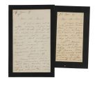 MICHEL (Louise) 2 lettres autographes à Lucien Barrois. - LAS, 14 janvier 1885, 3 p. sur 1 bifeuillet in-8 (20,8 x 13,2 cm), papier de deuil. Louise Michel voudrait obtenir de Clemenceau une dispense d’âge pour que son petit cousin (Lucien...