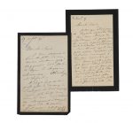 MICHEL (Louise) 2 lettres autographes à Lucien Barrois. - 1 LAS. 8 août 1885. 2 p. sur 1 bifeuillet in-8 (20,8 x 13,5 cm), papier de deuil. La lettre porte sur le sort d’un pauvre homme, non nommé, dont la situation est désespérée, et,...