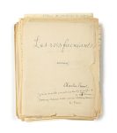 pelure. Important manuscrit autographe signé unique (?) de ce roman inédit, fantaisie historique mettant en scène les rois mérovingiens. Le manuscrit est signé au dernier feuillet et daté « Berlin 1929-Font Romeu 1930 » après le mot « FIN ». On l’a longtemps cru perdu : « Les Rois fainéants dont l’unique exemplaire a été égaré ne sera jamais publié » écrivait en 2011 son biographe Jacques Plessis. L’ouvrage se compose de 20 chapitres (les 2 derniers sont par erreur numérotés XX et XXI, mais il n’y a pas de n° XIX). Robert Denoël ne le publiera pas, tout comme d’autres éditeurs à qui le jeune homme avait montré le manuscrit, mais permettra au jeune Trenet de rencontrer Max Jacob qu’il admire. Deux citations de Zone d’Apollinaire et de L’Anneau d’Améthyste d’Anatole France figurent en épigraphe. Le roman s’ouvre sur ces lignes : « Des nuages jouaient à saute-mouton près d’un champ de pommes de terre qui se désolait dans l’ombre. Deux oiseaux oubliés (ou restés par mégarde) grelottaient avec des mouvements et des envols pénibles. Dans le salon vingt-trois princes et quelques dames nobles attendaient d’autres paroles de St Ouen ; mais l’évêque las, gonflé de graisse triste ne se décidait point à parler. Il s’asseyait, nerveux et découragé puis il se levait, essayait un autre fauteuil, enlevait un fil à sa soutane, tapait des pieds pour se réchauffer et ne formulait aucune explication de cette pantomime. » (f. 3). Le manuscrit présente des corrections et repentirs. Les épigraphes sur le feuillet de titre et au début des chapitres sont d’une encre différente, indiquant sans doute un ajout dans un second temps. Bibliographie: J. Plessis, Charles Trenet, L’Archipel, 2011. Des feuillets effrangés ou froissés en tête.