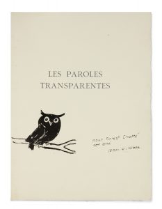 BRAQUE.– PAULHAN (Jean) Les Paroles transparentes. Paris, Les Bibliophiles de l’union française, [1955]. In-folio (43,6 x 32,8 cm), en feuilles, couverture rempliée illustrée, chemise et étui d’un autre ouvrage. ORNE DE 14 LITHOGRAPHIES...
