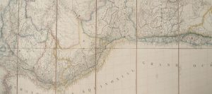 BRUÉ (Adrien-Hubert) Carte encyprotype, dédiée et présentée au roi. Paris, Ch. Picquet, 1843. 5 grandes cartes entoilées (125 x 140 cm à 186 x 125 cm), boîte recouverte de papier caillouté. Rare réunion de 5 grandes cartes gravées sur...