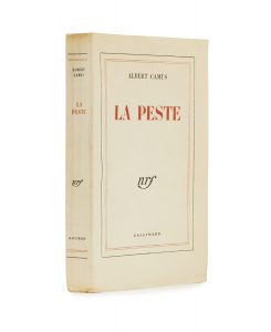 CAMUS (Albert) La Peste. Paris, Gallimard, 1947. In-8 (18,8 x 11,7 cm), broché. 337 p., [1] f. Édition originale. Un des 200 exemplaires numérotés sur papier vélin (n° 6). L’achevé d’imprimer est daté du 24 mai 1947. Petites insolations...