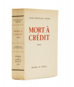 CÉLINE (Louis-Ferdinand) Mort à crédit. Paris, Denoël et Steele, 1936. In-8 (22,3 x 14,5 cm), broché, couverture rempliée. 697 p. Édition originale du second roman de l’auteur. Un des 85 exemplaires numérotés sur papier vélin pur fil (n°...