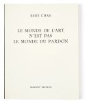 CHAR (René) Le Monde de l’art n’est pas le monde du pardon. [Paris], Maeght, [1974]. Grand in-4 (33,5 x 25,5 cm), en feuilles, couverture rempliée, emboîtage de l’éditeur. [1] f., 120 p., [1] f., 1 f. bl., [4] ff. Édition originale...