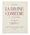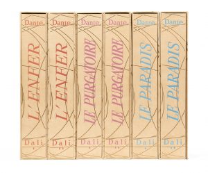 DALI.– DANTE La Divine Comédie. Enfer. Purgatoire. Paradis. Paris, Les Heures claires, 1959-1963. 3 parties en 6 vol. in-4 (33,5 x 27,3 cm), en feuilles, sous couvertures blanches rempliées, chemises et étuis illustrés. Célèbre édition de la...