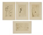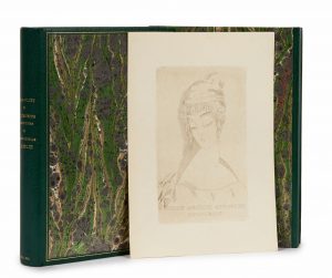 tête dorée, couvertures et dos conservés, porte-folio pour la suite en feuilles, reliée à l’identique, étui collectif (J.–L. Tellier). [2] ff., X p., [1] f., 213 p., [2] p. ÉDITION ILLUSTREE DE 15 POINTES SECHES EN COULEUR HORS TEXTE DE YAN-BERNARD DYL, REHAUSSEES A LA GOUACHE ET A L’AQUARELLE PAR TABARY ET ORNEE DE 166 BANDEAUX ET CULS-DE-LAMPE GRAVES SUR CUIVRE ET TIRES EN BISTRE. Un des 100 exemplaires numérotés sur papier de Hollande (n° 38), avec une suite sur papier d’Annam des culs de lampe et vignettes en noir (102 planches). Dans notre exemplaire, la suite contient aussi la pointe sèche libre en deux états (coloriée avec légende au crayon et en noir) qui ne se rencontre habituellement que dans les exemplaires numérotés sur papier du Japon. Séduisante illustration libertine. Bibliographie: Monod, 9106. Quelques piqûres ; petits défauts en marge sur quelques planches de la suite.