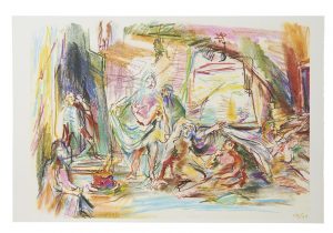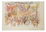 en toile de jute, titre en rouge sur le premier plat de l’étui. Belle édition ornée de 7 LITHOGRAPHIES ORIGINALES EN COULEURS D’OSCAR KOKOSCHKA, signées des initiales, et de 6 planches reproduisant les dessins, d’après les maquettes du Bal Masqué réalisées chez Wolfensberger. Tirage unique à 121 exemplaires sur papier vélin pur chiffon d’Arches, tous signés par Jouhandeau, Felia Leal et Oskar Kokoschka, l’un des XXXVIII destinés à l’auteur (n° XXXV). Provenance: Succession Felia Leal. Bibliographie: Monod, 6443. Très légères brunissures en marge de certains feuillets, couverture légèrement déchirée, quelques piqûres et infimes tâche, étui légèrement frotté.
