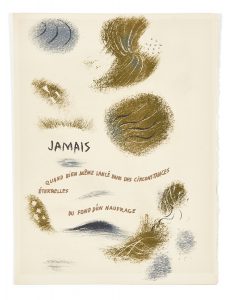 MASSON.– MALLARMÉ (Stéphane) Un Coup de dés jamais n’abolira le hasard. Paris, Amateurs du livre et de l’estampe modernes, 1961. In-folio (43,8 x 33,1 cm), en feuilles, sous couverture rempliée illustrée, chemise et étui peints. Premier...