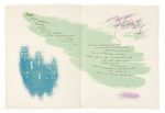 ouvrage publié par Le Livre et l’Estampe modernes. IL EST ORNE DE 28 LITHOGRAPHIES ORIGINALES EN COULEURS, dont de nombreuses sur double page, d’André Masson. Édition limitée à 102 exemplaires sur papier Chiffon d’Arches, signés par l’artiste, l’éditeur et le Président de la Société. Notre exemplaire est l’un des 77 nominatifs (n° 68). Notre exemplaire est enrichi de 3 gouaches supplémentaires, rappelant les illustrations mais probablement des essais pour le papier ornant les chemises et étuis. Provenance: Succession Felia Leal. Intérieur de la chemise légèrement sali, décharges des couvertures aux premiers et derniers feuillets, certains feuillets brunis, coins de l’étui frottés.