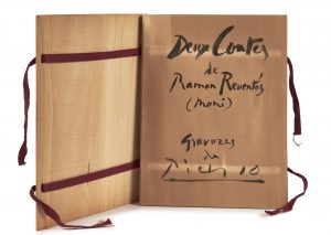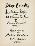 PICASSO.– REVENTOS (Ramos) Deux Contes (Le Centaure Picador- le Crépuscule d’un faune). [Paris et Barcelone], Éditions Albor, 1947. In-4 (33,3 x 25,8 cm), en feuilles, sous couverture imprimée, chemise originale sur ais avec titre en lettres...