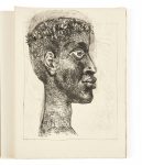 dos, étui. Édition originale. ORNEE DE 32 GRAVURES ORIGINALES DE PABLO PICASSO : une eau-forte sur la couverture, une eau-forte et pointe sèche hors texte pour le frontispice, 10 aquatintes à pleine page illustrant chacune un sous-titre et 20 gravures à la pointe sèche hors texte. Corps perdu est tiré à 219 exemplaires, chacun signé par l’auteur et l’artiste. L’un des 200 exemplaires sur papier vélin de Montval à la main, parmi lesquels l’un des 23 avec une suite sur vieux Japon (n° 8). Provenance: Succession Felia Leal. Bibliographie: Monod, 2461. Étui légèrement frotté, quelques pâles mouillures et piqûres aux premiers feuillets, quelques feuillets très légèrement salis, trace de pliure à la dernière planche de la suite.
