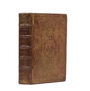 de style fanfare à décor pointillé, roulette fleurdelisée encadrant les plats, armes dorées au centre des plats, dos à nerfs orné de caissons dorés avec fleurs de lis dorée au centre, tranches dorées, dentelle intérieure dorée (reliure de l’époque). [4] ff., XXXVI p., 729 p., [1] f. Semaine Sainte ORNEE D’UN TITRE GRAVE ET DE 3 FIGURES HORS-TEXTE GRAVEES SUR CUIVRE DE JEAN-BAPTISTE SCOTIN. Exemplaire aux armes de Marie Leszczynska (OHR, pl. 2507, fer 1). Provenance: - Marie Leszczynska (armes). -St Joubert de Sainte Athanase (ex-libris manuscrit). - ex-libris d’un noviciat (manuscrit). Bande de papier découpée en tête du feuillet d’avertissement, coins refaits, restaurations aux mors, frottements aux coiffes et charnières, petits défauts aux gardes, quelques rousseurs, feuillet de garde en fin d’ouvrage portant des prières d’une main du XVIIIe s. détaché.