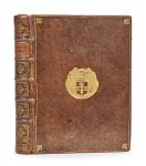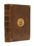 dorées aux écoinçons, dos à nerfs orné de fleurons dorés, pièce de titre caramel, doublures et gardes de papier décoré (reliure de l’époque). [1] f. ajouté, [6] ff., 646 p. Nouvelle édition. ILLUSTREE D’UN PORTRAIT EN FRONTISPICE DU DUC D’ÉPERON GRAVE EN TAILLE-DOUCE PAR J.–B. SCOTIN. Jean-Louis de Nogaret, seigneur de La Valette et de Caumont, duc d’Épernon (1554-1642), fut l’un des mignons d’Henri III qu’il servit avec fidélité. Il contribua à établir la régence de Marie de Médicis avant d’être écarté du pouvoir par le cardinal de Richelieu. Cette histoire est rédigée par son secrétaire et historiographe Guillaume Girard qui s’est aussi appuyé sur les souvenirs du père de Guez de Balzac. Livre de prix, aux armes du Collège des Quatre Nations ou Collège Mazarin. Un feuillet ajouté, sur papier fort, en tête avec le timbre sec du collège, mi-imprimé, mi-manuscrit, indique que l’ouvrage a été reçu en prix en 1741 par Charles Louis Denys Ballière Du Clos, élève en classe de quatrième. Le feuillet est signé « Robbe ». Provenance: - Collège des Quatre Nations (armes). - C. Ballière, « Académie de Rouen » (ex-libris gravé). Bibliographie: Quérard, III, 361. OHR, pl. 1529, fer 4. Coins et dos frottés, charnières du plat supérieur, largement fendues, des rousseurs, quelques feuillets brunis, traces de mouillure en tête et angle des premiers ff. et de la p. 499 à la fin du volume, petites taches en marge intérieure des 2 premiers ff., feuillet ajouté portant le sceau consolidé au dos.