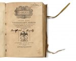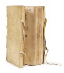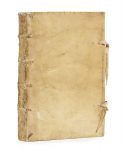 titre ancien à l’encre, lacets (reliure de l’époque). [4] ff., 172 p., [2] ff. – 247 p., [4] ff. (signatures : a8b4c-m8 et aa-qq8). Édition originale de cet important ouvrage en deux parties sur les médailles. Durant l’année 1553, trois éditions originales de l’ouvrage parurent, en latin, français et italien. ILLUSTREE DE 824 PORTRAITS EN MEDAILLON GRAVES SUR BOIS, REPRESENTANT LES HOMMES CELEBRES D’ADAM A HENRI II, ET D’UN GRAND OVALE REPRESENTATION LA NATIVITE, EGALEMENT SUR BOIS, DANS LA DEUXIEME PARTIE. Les figures passent pour avoir été dessinées par Corneille de Lyon et gravées par Georges Reverdy et plusieurs maîtres anonymes. Lettre de dédicace au roi Henri II. Provenance: - Theuvin ( ?) (ex-libris manuscrit) - Couvent des Carmélites de Saragosse (ex-libris manuscrit) Bibliographie: Baudrier, Bibliographie lyonnaise, IX, 205. Brun, Le livre illustré en France au XVIe s., p. 276. Quelques défauts au dos, plusieurs cahiers uniformément brunis, quelques rousseurs, piqûres au feuillet de titre et aux 2 derniers ff.