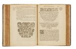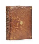 cm), veau fauve, fleurons dorés au centre des plats et aux angles, dos à nerfs orné, doublures de papier marbré (reliure du début du XVIIe siècle). [4] ff., 447 p., [8] ff. Édition des chroniques de C. de Seyssel, Jean d’Auton, M. du Bellay, F. Guichardin, etc. réunies et mises en lumière par Théodore Godefroy. ILLUSTREE D’UNE GRANDE VIGNETTE SUR LE TITRE, DE NOMBREUX BANDEAUX, LETTRINES ET GRANDS CULS-DE-LAMPE GRAVES SUR BOIS DANS LE TEXTE. Première partie seule. Provenance: - Prevost ( ?) (ex-libris manuscrit) - D. Lamy (ex-libris manuscrit). Bibliographie: Brunet V, 336. Première partie seule (sur 5), rousseurs, restaurations maladroites à la reliure (coins, tête du premier plat et charnières), coiffes manquantes, nombreux frottements et épidermures affectant la reliure, des rousseurs et petites taches, trace d’étiquette ancienne retirée en pied du feuillet de titre, petite déchirure angulaire à la première garde volante.