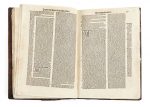 remonté. 267 ff. (dernier f. mal chiffré 271) (signatures : 2A-3K8 3L4). Seconde partie du commentaire de Niccolò Tedeschi aux Décrétales. Considéré comme un juriste majeur du XVe siècle, il est créé cardinal en 1440 par l’antipape Félix V. Belle impression en caractères gothiques sur 2 colonnes. Provenance: Couvent de Beauregard (ex-libris manuscrit). Bibliographie: Baudrier, VI, 126. USTC, 121913. Plats de reliure du XVIe siècle partiellement conservés, dos refait avec nombreuses restaurations aux coins, en tête et pied des plats, faiblesses à la reliure, dernier feuillet blanc lacunaire, f. 267 fragilisé avec manques en marge et partiellement dérelié, large déchirure au f. 239, fragilisation du papier en marge suite à une mouillure ancienne, des cahiers brunis.