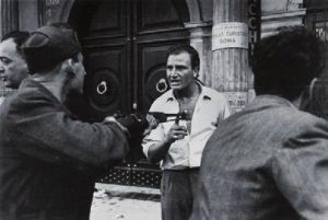 Carl Mydans 1907-2004 “Saboteur brazenly faces militiaman, Rome”, Italie, 1944.