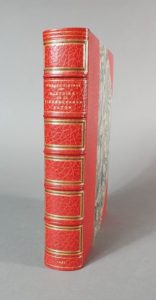 FLEURET (Bernard). Histoire de la bienheureuse Raton fille de joie. Paris, Éditions Mornay, 1931. Petit in-4, demi-maroquin rouge avec coins, dos orné, tête dorée, non rogné, couverture et dos, étui (Alix). Compositions gravées de Chas-Laborde. Tirage à 355 exemplaires, celui-ci sur vélin de Rives.
