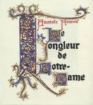 FRANCE (Anatole). Le Jongleur de Notre-Dame. S.l., 1925-1926. Manuscrit in-8 carré (environ 200 x 170 mm) de 26 pages, en feuilles, sous chemise de soie brochée et étui du début du XXe siècle. SUPERBE MANUSCRIT SUR PEAU DE VELIN ENLUMINE DANS LE GOUT MEDIEVAL, orné de 3 grandes et curieuses peintures. Texte rubriqué, agrémenté de bouts de ligne et de lettrines de différentes grandeurs. Conte transcrit et enluminé par le peintre Robert Lanz (1896-1965) pour Louis Barthou, de l Académie française : l explicit indique qu il n a d autre réplique qu un exemplaire identique transcrit et enluminé pour Jacques André. Le manuscrit est accompagné d une petite carte de vœux contenant UNE AQUARELLE ORIGINALE (représentation d un vitrail du XIIIe siècle de Notre-Dame de Paris) et un envoi autographe de Robert Lanz à Louis Barthou, en date du 2 janvier 1928. On joint une carte de visite de l enlumineur, imprimée en couleurs, à l adresse du 25 rue Myrha à Paris.