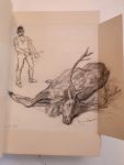 GENEVOIX (Maurice). Forêt voisine. S.l., Société de Saint-Éloy, 1931. In-4, maroquin fauve, janséniste, doublure de maroquin vert serti d un filet doré, gardes de moire, tranches dorées sur témoins, couverture et dos, étui (Semet & Plumelle). Édition illustrée de nombreuses eaux-fortes par Albert Decaris, Edgar Chahine, Auguste Brouet, Charles Hallo, Charles Jouas, Georges Jeanniot, etc. Tirage à 126 exemplaires, celui-ci nominatif. EXEMPLAIRE ENRICHI D UNE SUITE DE 52 GRAVURES, d un menu, d une planche de Paul-Adrien Bouroux en 4 états et de son DESSIN ORIGINAL AU LAVIS, de 19 DESSINS ORIGINAUX (crayon, lavis, encre ou aquarelle) par divers artistes ayant collaboré à l édition, ainsi que d UN CUIVRE ORIGINAL qui a été encastré dans la doublure du premier plat. De la bibliothèque Exbrayat. Dos un peu éclairci.