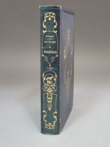 GOLDSMITH. Le Vicaire de Wakefield. Traduit en français avec le texte anglais en regard par Charles Nodier. Paris, Bourgueleret, 1838. In-8, chagrin bleu nuit, décor doré sur les plats et le dos, tranches dorées (Ch. Blaise 68. R. du Bac). Premier tirage de l illustration comprenant un portrait, 10 planches de Tony Johannot et de nombreuses vignettes sur bois dans le texte. Jolie reliure de l éditeur signée Charles Blaise. Quelques rousseurs et piqûres.