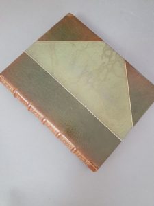 HANOTAUX (Gabriel) et Georges VICAIRE. La Jeunesse de Balzac. Balzac imprimeur 1825-1828. Paris, Ferroud, 1903. In-4, demi-maroquin vert olive avec coins, dos orné, tête dorée, non rogné, couverture (Pierson). Frontispice représentant l imprimerie de Balzac située ancienne rue des Marais Saint-Germain et 2 portraits gravés sur bois, par Auguste Lepère. Tirage à 350 exemplaires, celui-ci UN DES 60 DE TETE SUR JAPON : il contient les 3 planches en double état sur chine. Cachet ancien non identifié sur le titre. Dos passé.