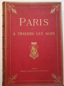 HOFFBAUER (Fédor). Paris à travers les âges. Aspects successifs des monuments et quartiers historiques de Paris depuis le XIIIe siècle jusqu à nos jours, fidèlement restitués d après des documents authentiques. Deuxième édition. Paris, Firmin Didot et Cie, 1885. 2 volumes in-folio, demi-chagrin rouge, plats de percaline rouge ornés d un encadrement doré formé de filets droits et au pointillé, armoiries au centre, fleuron aux angles, dos orné, tranches dorées (Reliure de l éditeur). 92 planches, dont 68 chromolithographies, 24 plans et nombreuses illustrations dans le texte. Jolie reliure de l éditeur. Frottements à la reliure (nerfs, coiffes et charnières).
