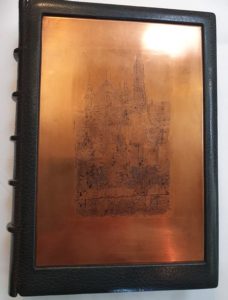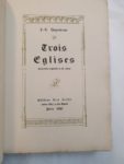 HUYSMANS (Joris-Karl). Trois églises. Paris, Éditions René Kieffer, 1920. Grand in-8, maroquin vert, cuivre encastré dans le premier plat, double filet intérieur, gardes de jute, tête dorée, non rogné, couverture et dos, étui (René Kieffer). 21 eaux-fortes originales de Charles Jouas. Tirage à 260 exemplaires. EXEMPLAIRE D ARTISTE COMPRENANT LES GRAVURES EN TRIPLE ETAT, UNE SUITE DE 3 ETATS SUR VIEUX JAPON, 2 DESSINS ORIGINAUX de l artiste et 14 GRAVURES SUR SATIN. En outre, il est enrichi d UN CUIVRE ORIGINAL, encastré dans le premier plat, et de 2 EPREUVES SUR SATIN collées en doublure.