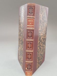 KEEPSAKE. Génie et bienfaisance. Paris, Gayet et Lebrun, 1841. In-8, demi-maroquin brun avec coins, dos orné, non rogné, couverture et dos (V. Champs). 20 portraits hors texte, gravés sur acier et tirés sur chine collé, en premier tirage. Des bibliothèques Victor Mercier (II, 1937, n°1297) et Henri Lafond (2015, n°100). Dos passé.