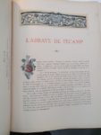 LE ROUX (Hugues et Alfred). La Bénédictine de l ancienne abbaye de Fécamp. [Rouen, 1905]. Grand in-folio, percaline verte, titre en rouge et composition sur le premier plat (Cartonnage de l éditeur). Édition originale, ornée de nombreuses illustrations. Superbe cartonnage de l éditeur. Quelques frottements.