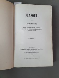 [LORENTZ (Alcide Joseph)]. Fiasque, mêlé d allégories. Illustre illustration d illustres illustralisés, illustrée par un illustrissime illustrateur illustrement inillustre. Paris, Auguste, élève de Lambert éditeur, 1840. Grand in-8, demi-veau bleu nuit, dos lisse orné (Reliure pastiche moderne). Nombreuses figures en noir par Alcide-Joseph Lorentz. Ouvrage très rare qui a pour sujet la répétition et la représentation d un drame en 5 actes et en prose intitulé : L Innocence outragée, ou la Providence mettant son doigt de Dieu sur le criminel (cf. cat. Soleinne, V, n°190). Exemplaire impeccablement lavé dans une parfaite reliure pastiche. De la bibliothèque Rebayrat, avec son ex-libris.