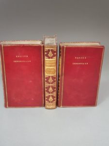 MARGUERITE DE NAVARRE. [Heptameron français]. Les Nouvelles. Berne, Chez la Nouvelle société typographique, 1780-1781. 3 volumes in-8, maroquin rouge, triple filet doré, mention dorée sur le premier plat, dos lisse orné, pièces de titre et de tomaison blonde, roulette intérieure, tranches dorées (Reliure de l époque). Jolie illustration gravée en taille-douce, comprenant 3 frontispices de Dunker, 73 figures de Freudeberg, 72 vignettes et 72 culs-de-lampe de Dunker. Exemplaire en maroquin d époque ayant appartenu à François Racine Demonville (1734-1797), grand maître des Eaux et Forêts du département de Rouen et créateur en lisière de la forêt de Marly du Désert de Retz, jardin pittoresque anglo-chinois. Le bibliophile a fait frapper son nom en lettres dorées sur le premier plat de chaque tome. Rousseurs claires. Dos refaits, petits frottements aux coins et sur les coupes.