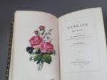 MARTIN (Aimé). Le Langage des fleurs. Douzième édition. Bruxelles, Société typographique belge, Adolphe Wahlen et Cie, 1842. In-12, chagrin vert bouteille, encadrement orné d un filet droit et entrelacé aux angles, cartouche central, dos lisse orné, roulette intérieure, tranches dorées (Reliure de l époque). 15 (sur 16) jolies planches en couleurs, sous serpente rose légendée. Charmante reliure de l époque. Manque la planche pour le mois de juin, traces de cire blanche sur les plats, quelques légères rousseurs.