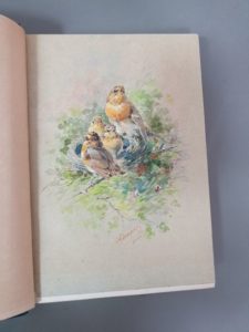 MICHELET (Jules). L Oiseau. Huitième édition. Paris, Hachette et Cie, 1867. Grand in-8, maroquin bleu, janséniste, encadrement intérieur orné de deux doubles filets et de fers dorés, doublure et gardes de moire bleu ciel, tranches dorées sur témoins, couverture, étui (Canape 1909). Édition illustrée de 210 vignettes sur bois de Giacomelli, en premier tirage. Un des 200 exemplaires sur papier vélin teinté, avec le texte encadré d un double filet rouge. EXEMPLAIRE RELIE POUR ARTHUR MEYER QUI L A ENRICHI D UNE BELLE AQUARELLE ORIGINALE DE GIACOMELLI ET D UNE LETTRE AUTOGRAPHE SIGNEE DE MICHELET (4 pages in-8, datées du 6 mars 1850). Des bibliothèques Paul Gavault (V, 1951, n°1999), Georges Degryse et Chantal Cazaux. Dos passé, reteint.