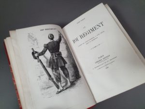 NORIAC (Jules). Le 101e régiment. Paris, Bourdillat et Cie, 1860. In-8, bradel demi-maroquin rouge avec coins, dos lisse orné en long, décor doré et mosaïqué (Champs-Stroobants sr.). Illustrations de Armand-Dumarescq, Janet, Pelcoq, Morin et Deuxétoiles. Un des 45 exemplaires sur papier vélin. Très bien relié.